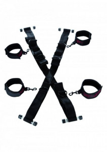 Η απόλυτη υποταγή! Σετ χειροπέδων και ποδοπέδων που ακινητοποιεί τον/την σκλάβο/α σας με χιαστί ρυθμιζόμενο ιμάντα που μαγκώνει πίσω από την πόρτα. Όλα τα δεσίματα είναι αποσπώμενα και διαθέτουν μεταλλικά γαντζάκια. Ιμάντας ρυθμιζόμενος έως 2.20μ. Δεσίματα μήκος 36.75εκ.
