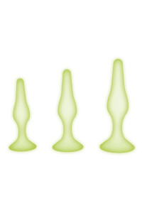 Αυτό το σύνολο περιλαμβάνει τρία σταδιακά μεγαλύτερα βύσματα για να εξερευνήσετε το παιχνίδι σε μια σειρά επιπέδων. Είναι όλα τα συστήματα που λάμπουν με αυτό το κιτ πρωκτικής εκπαίδευσης. Οι λεπτές, κωνικές συμβουλές σε αυτά τα βύσματα αλλά τα βύσματα τα καθιστούν εύκολο να εισαχθούν για πρωκτική προπόνηση και για τους ειδικούς του πρωκτικού παιχνιδιού.