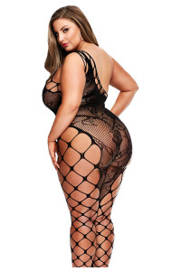 Διαθέσιμο σε μαύρο midnight, λεβάντα και κόκκινο κόκκινο, αυτό το εξαιρετικό και αποπνικτικό σχέδιο με έναν ώμο θα σας κρατήσει στο επίκεντρο της προσοχής. Με ένα σώμα κομψά σχεδιασμένο σε περίπλοκο πλέγμα και φλοράλ δαντέλα, κάθε πλευρά ανοίγει σε φαρδύ δίχτυ, διατηρώντας το στυλ φρέσκο, διασκεδαστικό και παιχνιδιάρικο! Το σχέδιο με ανοιχτό καβάλο κρατά το σεξουαλικό αποτέλεσμα σε υψηλά επίπεδα, ενώ το ασορτί g-string παρέχει σεμνότητα (αλλά μόνο αν θέλετε!).plus size