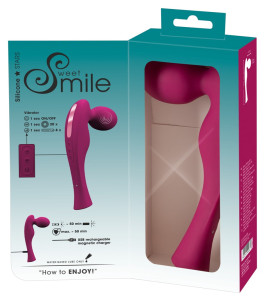 Εύχρηστο, ελαφρύ ειδικό ραβδί από το γλυκό χαμόγελο με μια εργονομικά κυρτή λαβή και βέλτιστα γωνιακή, εξαιρετικά εύκαμπτη κεφαλή μασάζ. Φτάνει σε όλες τις περιοχές του σώματος εύκολα και μπορεί να τους απολαύσει με δονήσεις και μασάζ. Το βελούδινο μαλακό κεφάλι σιλικόνης χαϊδεύει κάθε σημείο ευχαρίστησης. Άνετη διασκέδαση μασάζ μόνη της ή ως ζευγάρι! Ο ισχυρός κινητήρας έχει τη σωστή ταχύτητα για κάθε ανάγκη με 20 λειτουργίες δόνησης σε 8 ταχύτητες. Ο έλεγχος 3 κουμπιών στην άνετη λαβή καθιστά εύκολο τον έλεγχο των δονήσεων στο κεφάλι μασάζ. Μπορεί ακόμη και να χρησιμοποιηθεί στο μπάνιο ή στο ντους επειδή το ευέλικτο, ολόπλευρο μασάζ είναι αδιάβροχο!